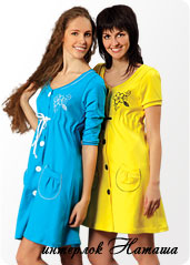 Модель: молодежный халат приталенного силуэта на пуговицах. Особенности данной модели – круглые накладные карманы и рукав 3/4 или короткий. Силуэт формируется за счет кулиски под грудью. Линии горловины и карманов подчеркнуты кантом в цвет набивного рисунка. Благодаря своей яркости и динамичности, халат «Наташа» выпускается под торговой маркой «Fresh».
